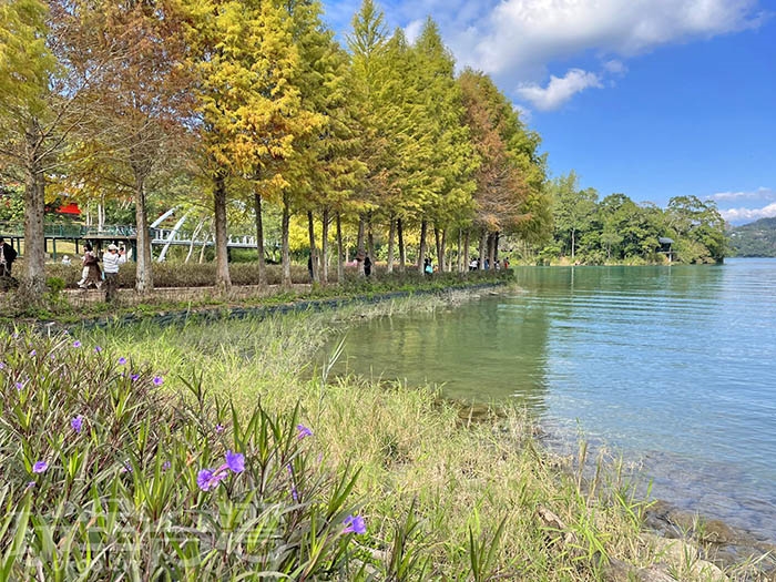 12月日月潭景點推薦:金色落羽松、雙心花圃浪漫散步路線>