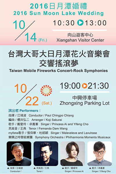 第一個周末登場得是充滿愛與幸福的「日月見證‧永結同心」,2016日月潭婚禮!不論是優雅的西式婚紗或是經典的傳統旗袍,準新人們快來參加這場屬與你們的婚禮,讓浪漫的日月潭為你們的愛情加溫!
